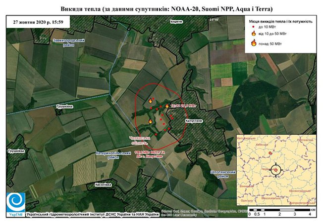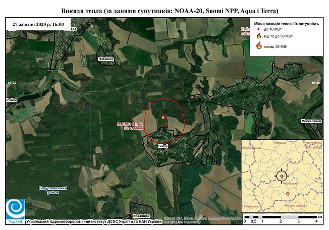 інформаційно-аналітичну систему автоматизованого моніторингу викидів тепла і виявлення потенційно небезпечних пожеж на території України. Система працює на основі даних, зібраних штучними супутниками Землі, які знаходяться на геостаціонарній орбіті. Орієнтовно щогодини (з 01:00 до 08:00 і з 12:00 до 18:00) система формує оперативні повідомлення про виявлені нові теплові аномалії (ділянки поверхні з температурою, суттєво вищою за номінальну).